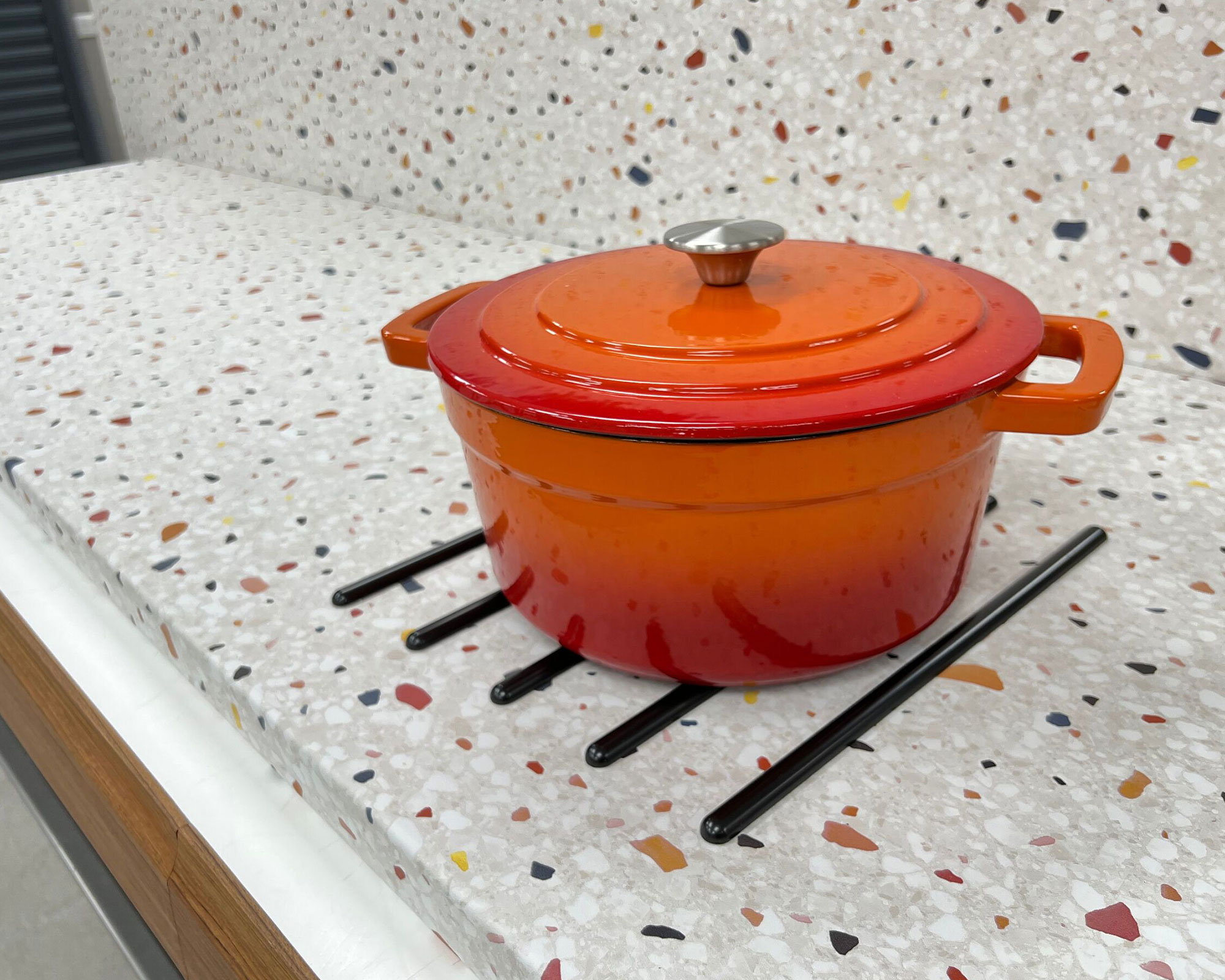 All panels are made using recycled material. We manufacture to order, which helps avoid over-production and waste. Our panels are designed for long service life, and you can use low-VOC, solvent-free grab adhesive if indoor air quality is a priority. Recycling or disposal options will depend on local facilities.
